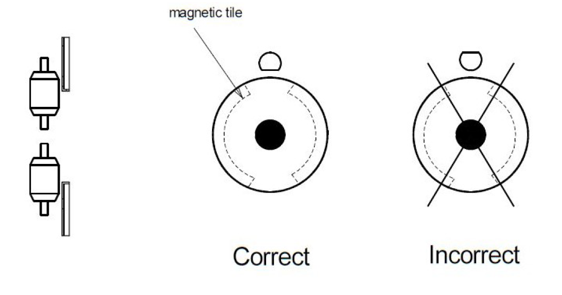 注意!必須確保傳感器相對于電機的位置正確。